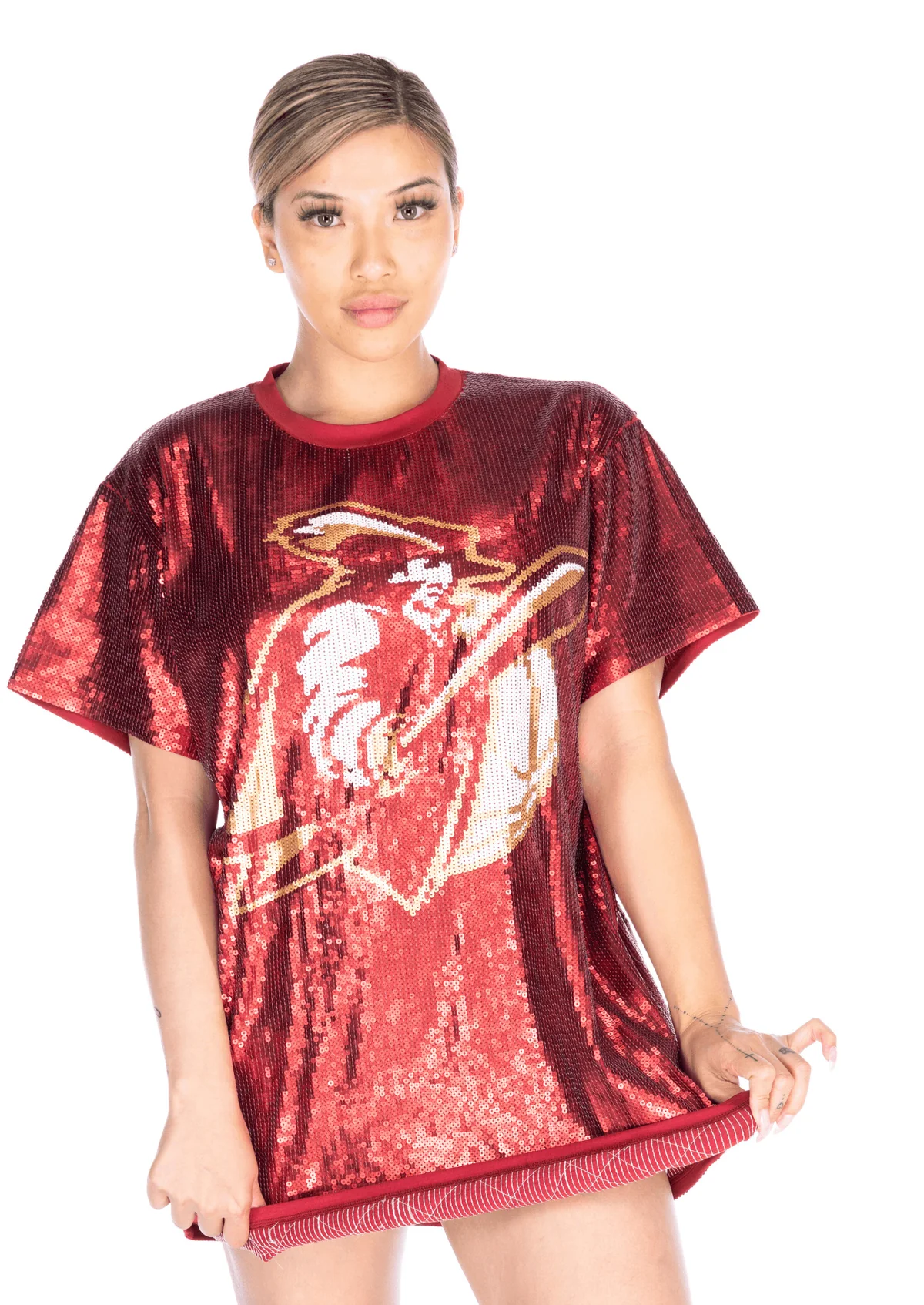 Don't miss out on our exclusive collection of sequin basketball jersey dresses specifically designed for women who love to celebrate their favorite sports teams in a glamorous way.