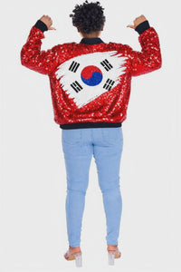 Designed by the Sequin Fans brand, this stunning South Korea World Cup Sequin jacket beautifully showcases your love for the South Korea World Cup team. Step onto the field or into any game day event with confidence and style with this sports glam World Cup jersey jacket, perfect for parties that go from day to night.