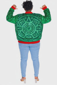 Designed by the Sequin Fans brand, this stunning Mexico World Cup Sequin jacket beautifully showcases your love for the Mexico World Cup team. Step onto the field or into any game day event with confidence and style with this sports glam World Cup jersey jacket, perfect for parties that go from day to night.