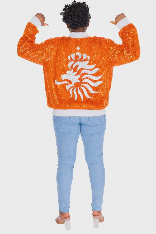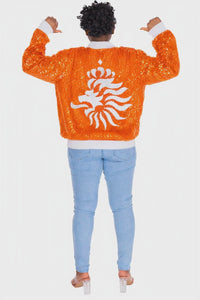 Designed by the Sequin Fans brand, this stunning Netherlands World Cup Sequin jacket beautifully showcases your love for the Netherlands World Cup team. Step onto the field or into any game day event with confidence and style with this sports glam World Cup jersey jacket, perfect for parties that go from day to night.