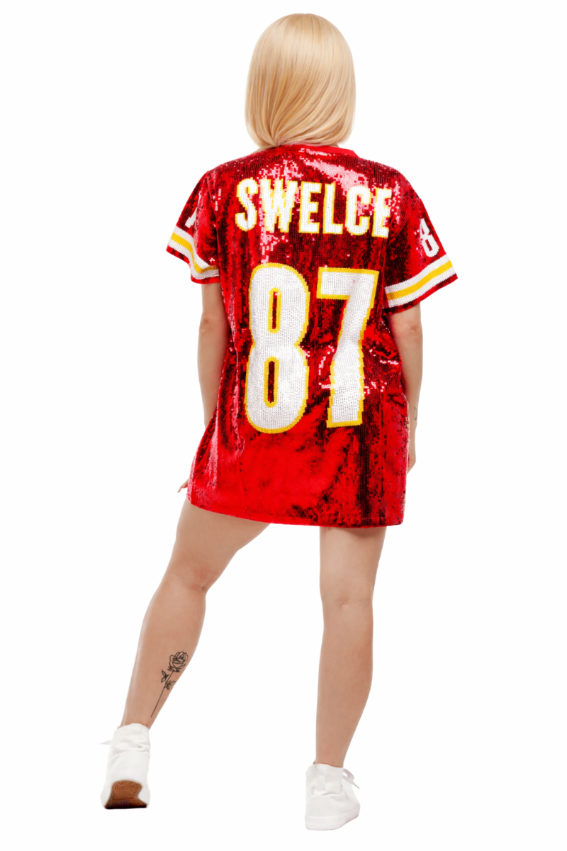 Elevate your game day style with our Swelce Football Sequin Dress, a stunning ensemble that fuses fashion and team spirit! This sports jersey dress perfectly captures your love for your team and will make you shine brighter than ever with beautiful sequins. Perfect for watch parties, tailgates, and being inside the stadium, you can easily radiate team pride alongside glamorous style!